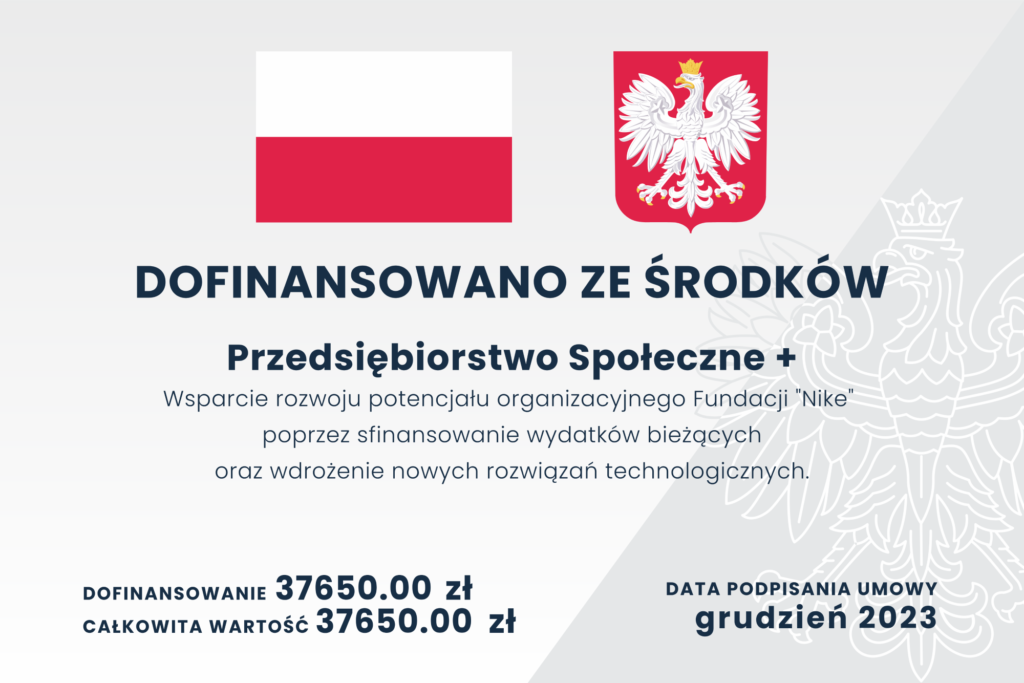 TYTUŁ ZADANIA PUBLICZNEGO: Wsparcie rozwoju potencjału organizacyjnego Fundacji „Nike” poprzez sfinansowanie wydatków bieżących oraz wdrożenie nowych rozwiązań technologicznych.